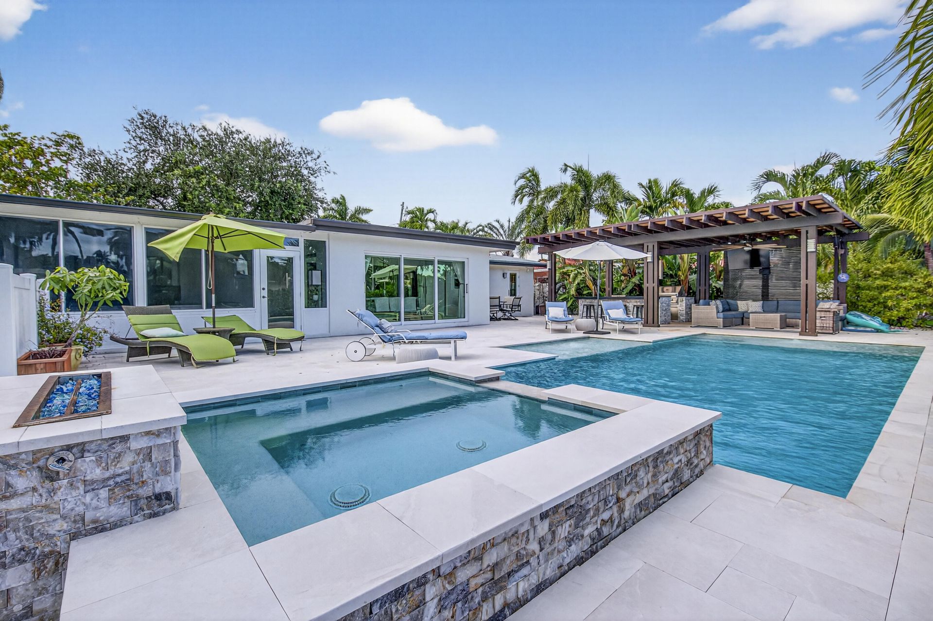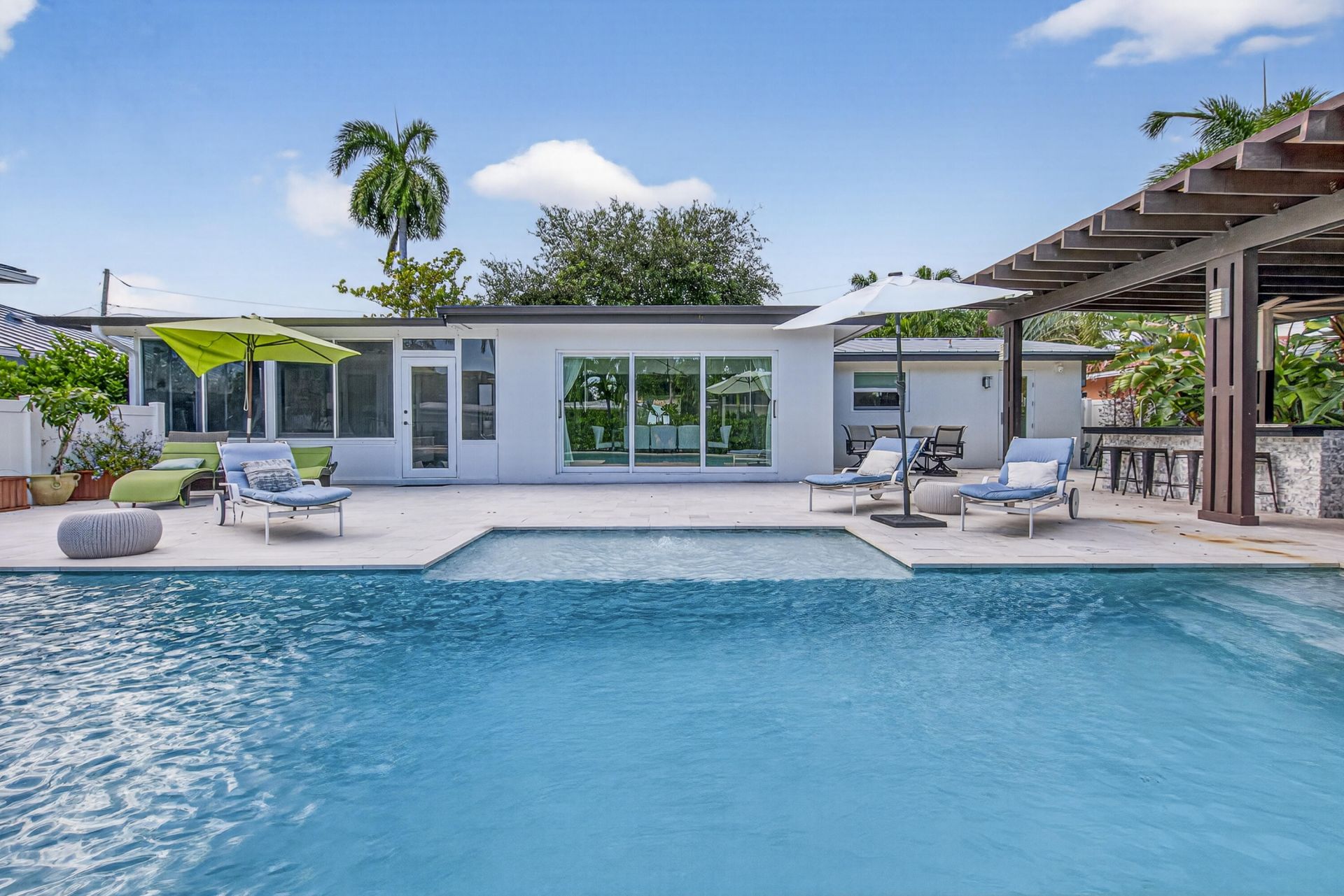 Exquisite 2 bed/2 bath waterfront pool home with a 2 car garage, located in the quiet Gated neighborhood of Bal Harbour, Fort Lauderdale! Step outside and you'll find the ultimate outdoor waterfront experience with a large pergola, complete with a full outdoor luxury kitchen & seating area with Bose Speakers and TV providing a relaxing space to enjoy your favorite shows or sports under the open sky! Sunroom off the master bedroom offers a peaceful retreat to relax, and a full work space. Convenience is at your doorstep, with Whole Foods, Trader Joe's, and Publix just a stone's throw away. The vibrant Las Olas district, beautiful beaches, and all that Fort Lauderdale has to offer are within close proximity. Home is available for short term rental up until 12/31/2026.