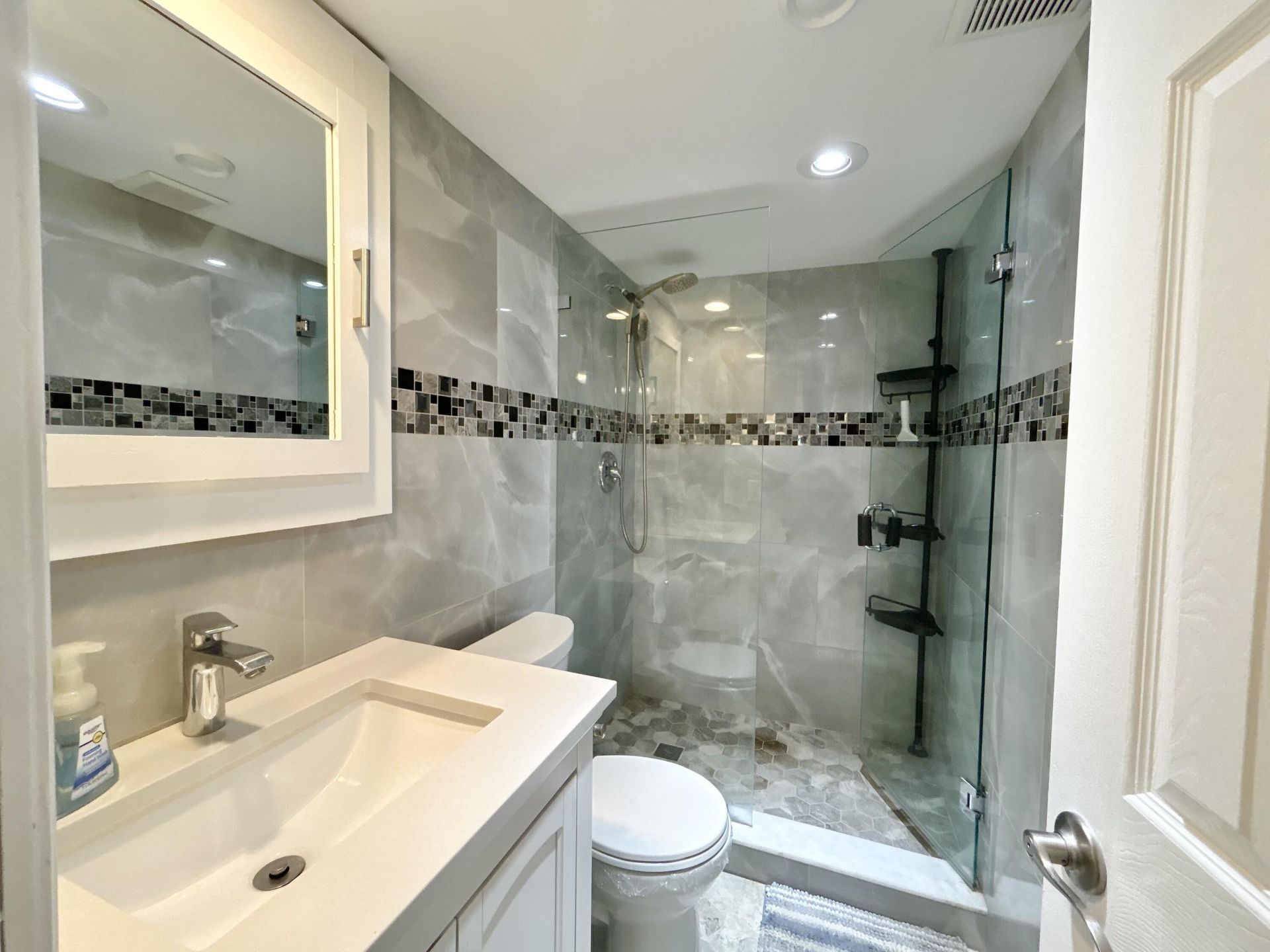 Beautiful 2 bedroom 2 bath condo located in the active 55+ community of Pine Ridge II. Renovated from top to bottom w elegant crown molding & new tile flooring w accoustic underlayment throughout the entire property including the balcony. HURRICANCE/IMPACT WINDOWS for storm protection. New electric panel. New A/C. Kitchen features glass backsplash, upgraded stainless steel appliances w double oven range & full sized refrigerator. Large food pantry w 10 drawers. Utility/laundry room offers extra cabinetry & Kenmore washer/dryer w extra capacity stainless steel tub. All windows have new blinds including designer crank down blinds on the balcony. Both bedrooms & bathrooms offer walk in custom closets, tiled walk in showers, frameless glass doors and tiled walls. THIS PROPERTY IS A MUST SEE !! Community is offers a clubhouse, heated pool, bocce & shuffleboard. Residents are very active with parties, get togethers & events. Come join the fun!!! Centrally located to the beach, airport, shopping, medical, I95 & turnpike.