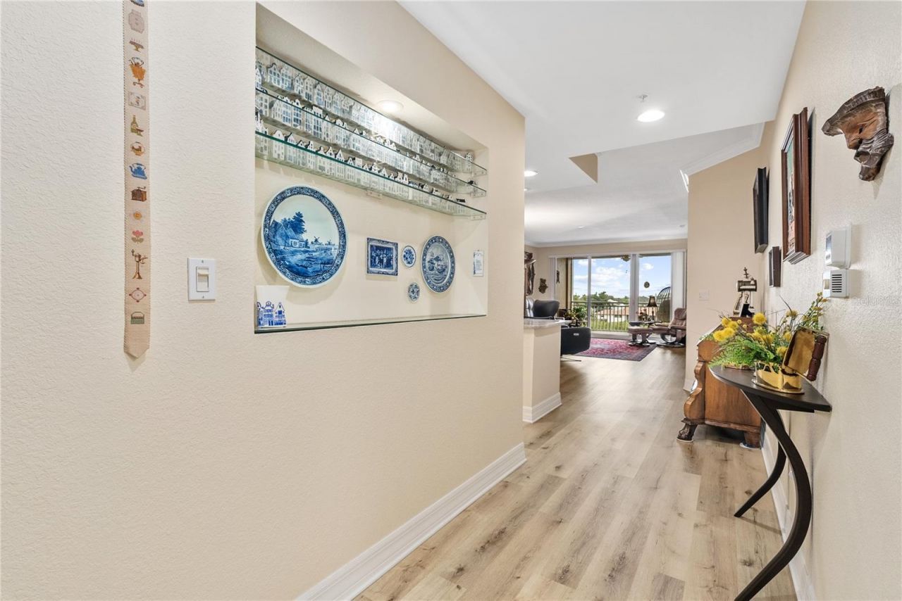 This meticulously maintained, waterfront residence is in an amenity-rich, gated community. Offering over 2,000 square feet of casual luxury, the well-designed living space includes two bedrooms, two baths and features a welcoming foyer, a breakfast area, and a separate room ideal for a den or home office. The upgraded appointments throughout are numerous and include top-of-the-line KitchenAid appliances, custom cabinet pullouts and the kitchen's showstopper is the exquisite stone counter surfaces, which wow and make everyday cooking, or your gourmet meal preparation, a joy. Plantation shutters and remote-controlled blinds grace many of the windows. The views from your primary retreat vie for your attention thanks to the shimmering intracoastal front and center. Generous in size, the main retreat delights with a walk-in shower, large soaking tub, double vanities, a separate makeup area, private water closet and dual walk-in closets. The second bath features a recently installed walk-in tub, designed for enhanced comfort, ease and safety. Enjoy expansive water views from your fourth-floor balcony, where nesting birds, jumping fish and dazzling sunsets create a stunning backdrop for your daily pleasure. The inside laundry room and your two assigned parking spaces are under the building and out of the elements, adding to the opportunity. The lifestyle amenities in this friendly community include recently resurfaced tennis and pickleball courts, a heated swimming pool, a clubhouse with fitness area, kayak storage and launch, and fishing. Boat slips are available on a first-come basis for an additional fee. Enjoy a waterfront picnic under the gazebo, complete with grills, a walking path and pretty greenspace areas. Ideally close to shopping, dining, the crystal sand beaches and famed Oscar Scherer State Park, which offers biking, birdwatching, geocaching and over 15 miles of scenic hiking trails, and a natural lake for swimming, and the best part is the proximity, just across the street. Come be enchanted, as this slice of Florida paradise is one you won't want to miss.